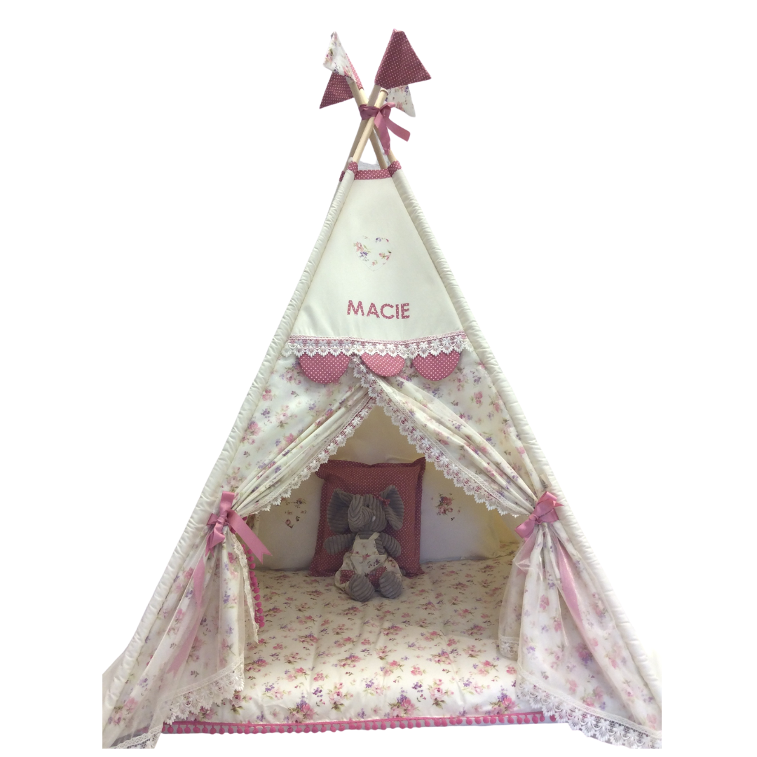 /    /  Teepees, Girls  /  Vintage Bouquet & Lace Deluxe Teepee